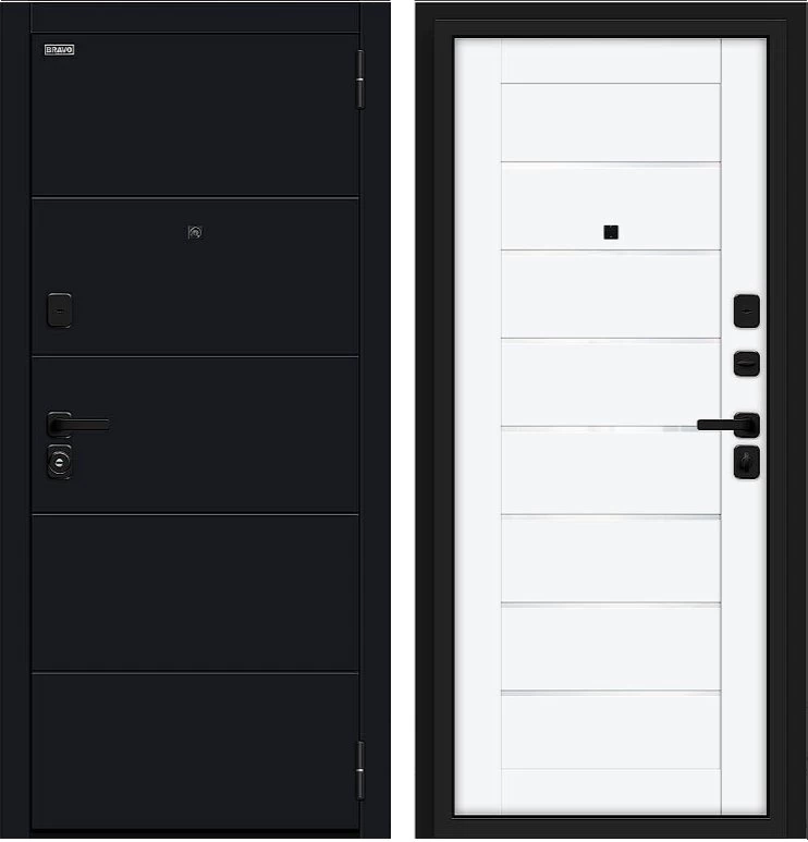 Надежная входная Дверь Браво Прайм/SBlack-Black Shell/White Silk премиум класса по цене 40 395 руб. Большая толщина стали защитит от проникновения в ваш дом, квартиру или коттедж. Используется очень качественная фурнитура: замки, цилиндры, ручки, защелки. Покрытие и отделка двери изготовлено под внимательным контролем производителя. Дверь имеет долгий срок службы и гарантию.