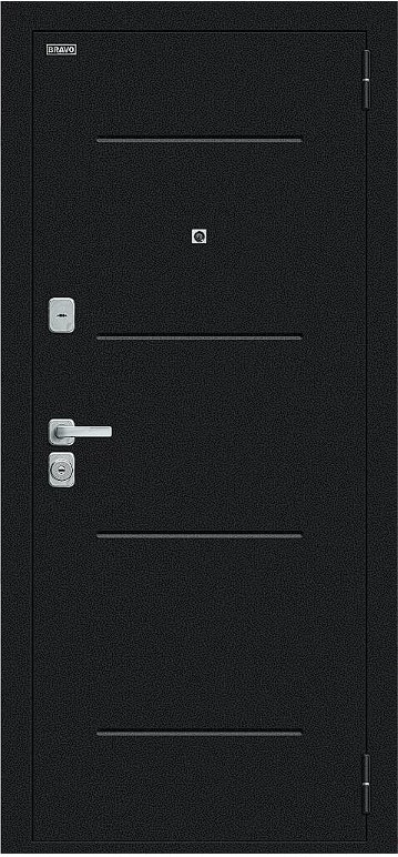 Надежная входная Дверь Браво Техно/BChrome Букле черное/Wenge Melinga премиум класса по цене 35 095 руб. Большая толщина стали защитит от проникновения в ваш дом, квартиру или коттедж. Используется очень качественная фурнитура: замки, цилиндры, ручки, защелки. Покрытие и отделка двери изготовлено под внимательным контролем производителя. Дверь имеет долгий срок службы и гарантию.